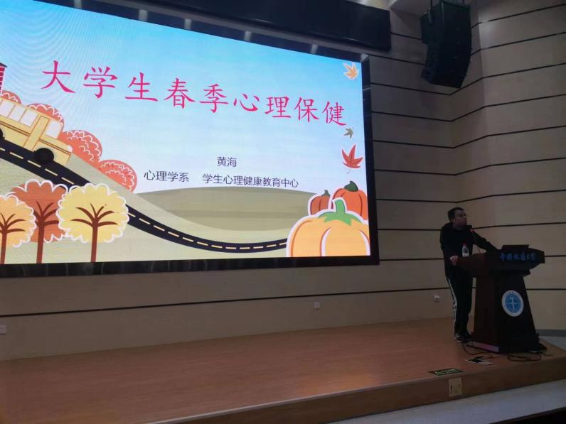 为进一步加强大学生心理健康教育,促进同学们人格的健全发展,糖心vlog 邀请心理咨询中心黄海老师开展了《大学生春季心理保健》的主题讲座。帮助同学们完善心理建设,从而更好的调整学习状态,适应新学期,新生活。除了普适性的讲座,糖心vlog 还建立了心理问题重点关注台账,对重点关注学生,各年级辅导员与学生骨干及时跟进,谈心谈话,提供帮助。