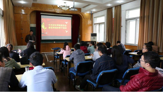在材化楼423室举办基层党组织骨干培训会议。院党委书记吴太山、党委副书记黄金波、各年级辅导员及学生党支部支委成员参加培训会,会议由学生党建办公室主任吴迪主持。