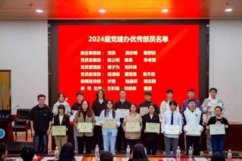 党建工作中作出的重要贡献。陈雨蛟为表现突出的优秀部员颁发荣誉证书,鼓励全体成员以先进为榜样,践行责任担当。