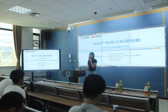 程寒松教授团队科研成果成功转化的实例讲授知识产权的重要性。刘文婷指出,用知识产权来保护科研成果才是真正受到法律保护的途径。她通过知识产权保护的盲区和容易存在的问题提示学生们切勿随意将自己的科研成果通过公众号,微博等媒介传播,告诫学生们重视知识产权的价值。同时,如何将自己的科研成果发挥出最大的价值,刘文婷向学生们详细地介绍了科研成果转化的途径。