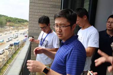 院长夏帆、办公室主任李晓晔、辅导员白振洋、唐伟查看宿舍阳台护栏