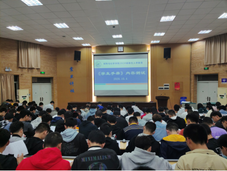 有机组织全体新生学习2020版《学生手册》,了解手册中关于学业要求、纪律规范等重点内容,做到心中有政策,脑中有规则,做到遵规守纪,养成良好的生活学习习惯。
