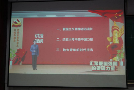 全体新生干部进行了科学家精神与爱国主义专题教育教育。孟大维教授以《我的同学黄大年》,通过分享自己与黄大年教授在求学和工作不同时期的点滴故事,向同学们展现出两位科学家热烈的爱国主义情怀和浓厚的同窗情谊,现场师生无不为之动容,表示要学习科学家精神,实现科技强国梦想。