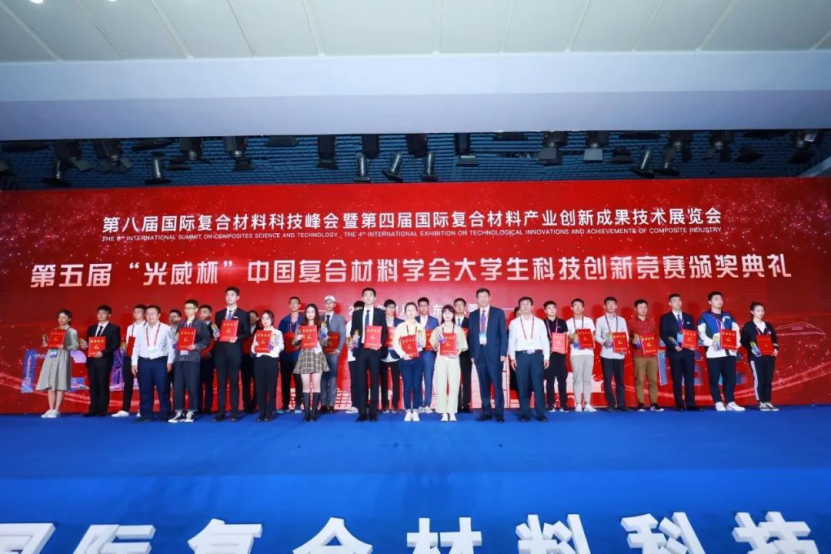 “光威杯”中国复合材料学会大学生科技创新竞赛是由中国复合材料学会、中国化工教育协会、威海市科学技术局、威海火炬高技术产业开发区管委会共同主办;威海光威复合材料股份有限公司承办,北京化工大学、哈尔滨工业大学、南京航空航天大学、山东大学、陕西科技大学、武汉理工大学共同协办,打造的国家级高性能复合材料行业赛事,对于激发大学生的兴趣和潜能,提高大学生的综合素质、创新思维、实践能力和团队协作能力都具有独特和不可替代的重要作用。第五届“光威杯”中国复合材料学会大学生科技创新竞赛以“新材料、新创意、新世界”为主题,旨在助力新材料提质和协同应用工程,服务新工科建设和卓越工程师培养,促进大学生对复合材料的理解认识、激发创新意识、增强研究和工程实践能力,推进我国复合材料领域的创新发展。