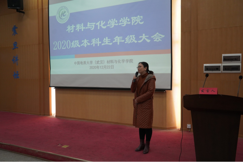 2020级本科生年级大会在南望山校区教三楼109隆重举行,院党委书记黄菊老师出席会议,2020级辅导员侯亚飞主持会议。