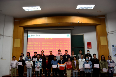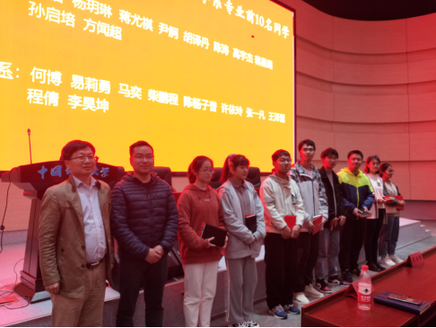 随后进行上一年度学风表彰,院党委副书记余江涛为各专业前10%同学颁奖并合影留念,同时鼓励全体同学向先进看齐,争取更大进步。