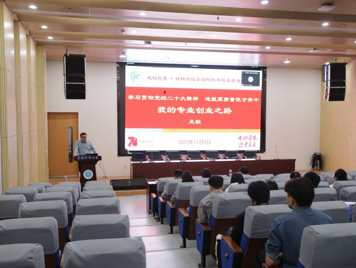 2006届优秀校友王懿学长从自身经历讲起,结合自己的工作经验对大家进行了专业指导,强调了知识在专业发展中的重要性,有了知识的根基,才能步履铿锵地行走在创业的道路上。王懿学长还鼓励大家共同创业,寻求企业合作,做富有智慧的创业人。同时王懿学长对同学们的提问也进行了细致的解答,鼓励更多的年轻人加入材料领域,共同解决国家发展中遇到的难题。