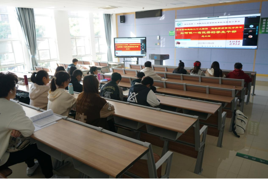 刘成校友以《涵养家国情怀,立志奋发有为》为主题为同学们做专题讲座。刘成从自己在曲樟乡两年脱贫攻坚经历出发,向同学们介绍了他的工作经历——从基层干部正风肃纪到早读晚规午讨论制度落实,从落实村民危房改造到助学助困助力乡村振兴,他带领团队一步步除忧解难,为曲樟乡村民带来福祉。同时,刘成深情表白母校:“母校教会了我专业知识和科学素养,给予了我克服困难的勇气,赋予了我吃苦耐劳的特质,培养了我仰望星空、脚踏实地的作风,更塑造了我广阔而卓越的眼界。熬过无数个日日夜夜,走访许许多多乡野村庄,帮助许多人走出贫困,是母校‘艰苦朴素,求真务实’的校训精神一直指引着我。”针对如何平衡工、学关系的问题,刘成向同学们讲解了他的感悟。他强调,必须做到工学双优、工学互促。这对于得到社会认可,锻炼自我能力,回应组织需要都有着重要意义。