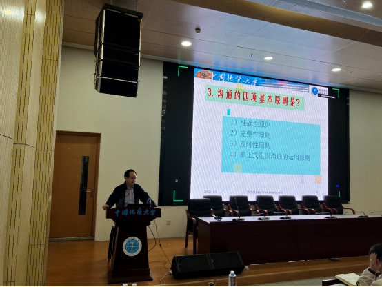 帅传敏教授以《管理ABC》为题,用理论结合自身经历,为同学们讲述“如何提升管理领导能力”。帅传敏用英语向大家亲切地问候,并采用诙谐幽默的方式——“帅哥”称呼自己。欢笑声中,帅教授用自己工作以来从政府单位管理服务到高校教育学术研究的多次转型进行了自我介绍,并以管理-领导-沟通三个篇章开启讲解。帅教授用“三个和尚没水喝”的故事点明管理的重要性,他向同学们阐明“管理是艺术也是科学”的双重含义,并用工作定额的例子,向同学们讲述管理科学的诞生。帅教授向同学们介绍,领导力是一门艺术,管理者与领导者具有根本性的区别:管理者埋头拉车,正确的做事;而领导者抬头看路,做正确的事。在沟通篇的讲解中,帅教授以沟通作为根本点,用生动有趣的漫画向同学们论述沟通的重要性和沟通的技巧性。