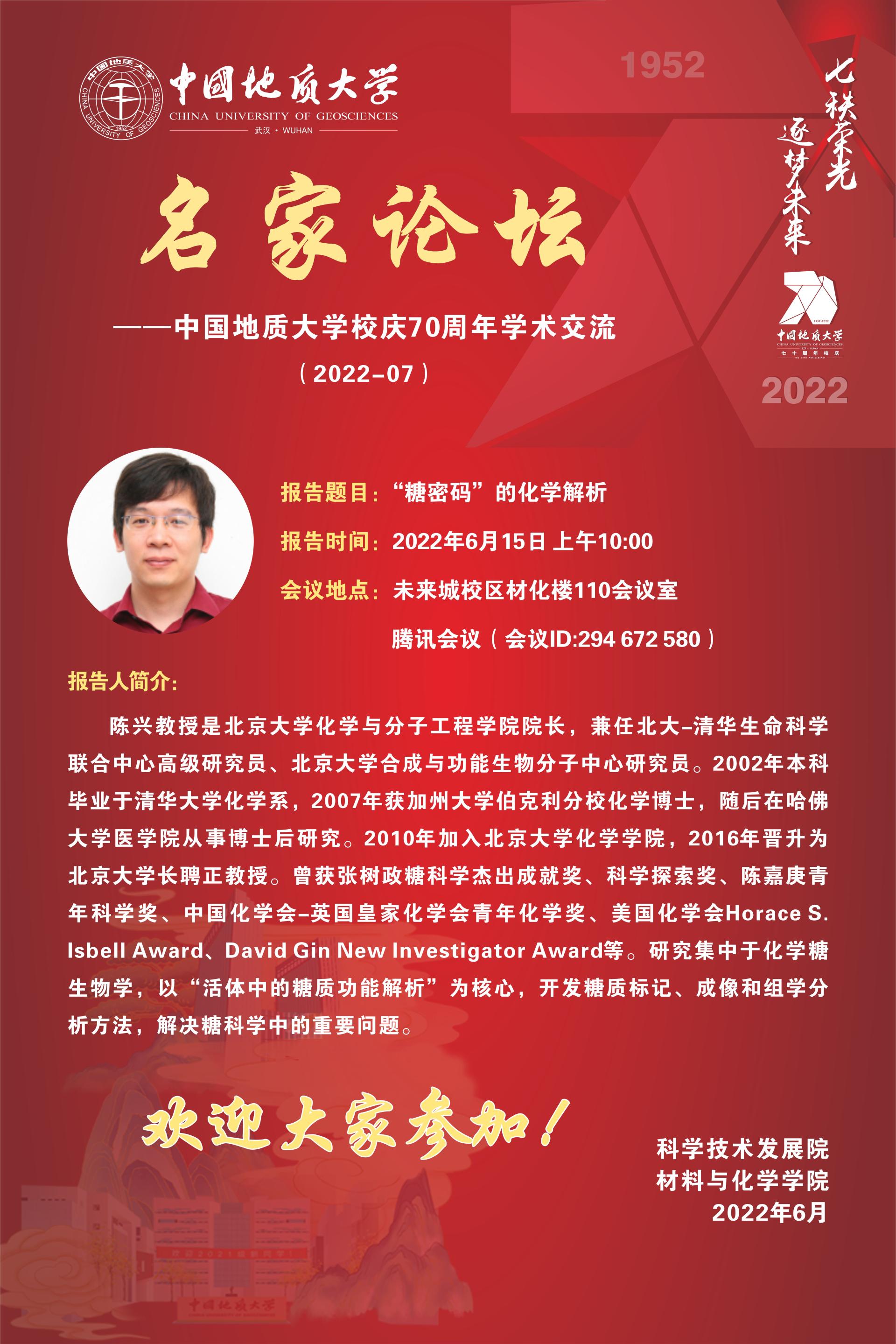 应糖心vlog 邀请,国家杰青、北京大学化学与分子工程糖心vlog 院长陈兴教授将与师生交流并讲座。