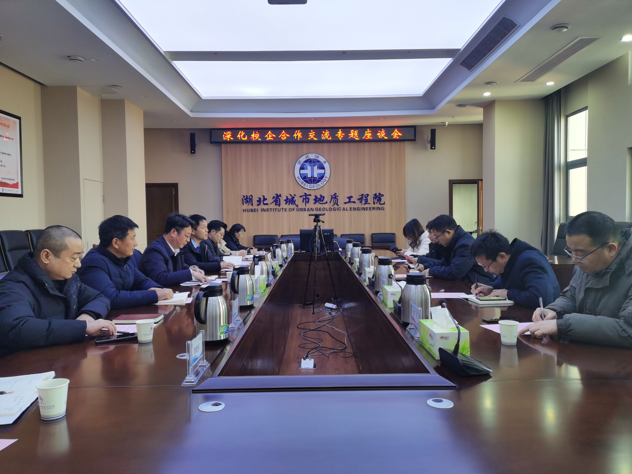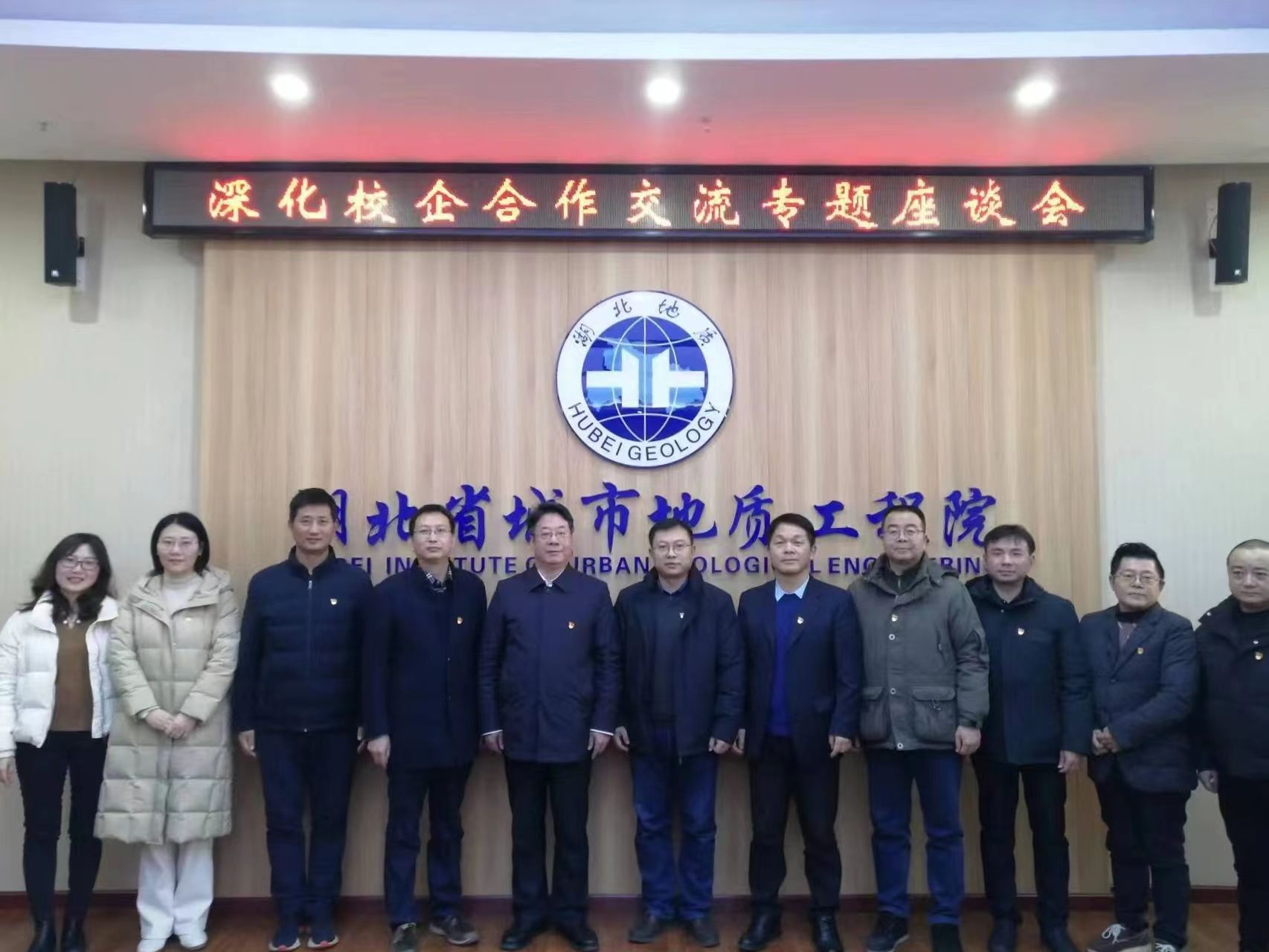 党委书记梁本哲一行5人走访湖北省城市地质工程院,启动党建联建共创,推动共建学生实践教育基地,并就深化校企合作进行专题座谈交流。