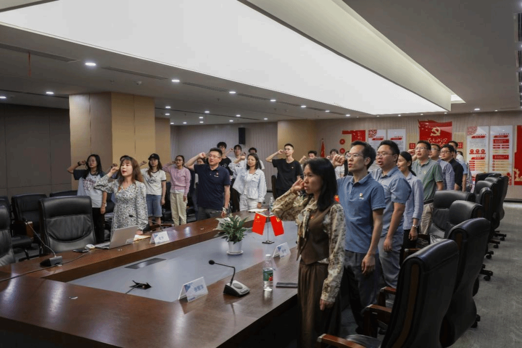参观结束后,校企双方在公司党建活动室联合开展了主题党日。校企双方共同重温入党誓词,学习贯彻习近平总书记在湖北考察时的重要指示精神,学习习近平总书记关于形式主义官僚主义的重要论述摘选,观看中央八项规定精神学习教育警示教育片及国家安全教育警示教育片。