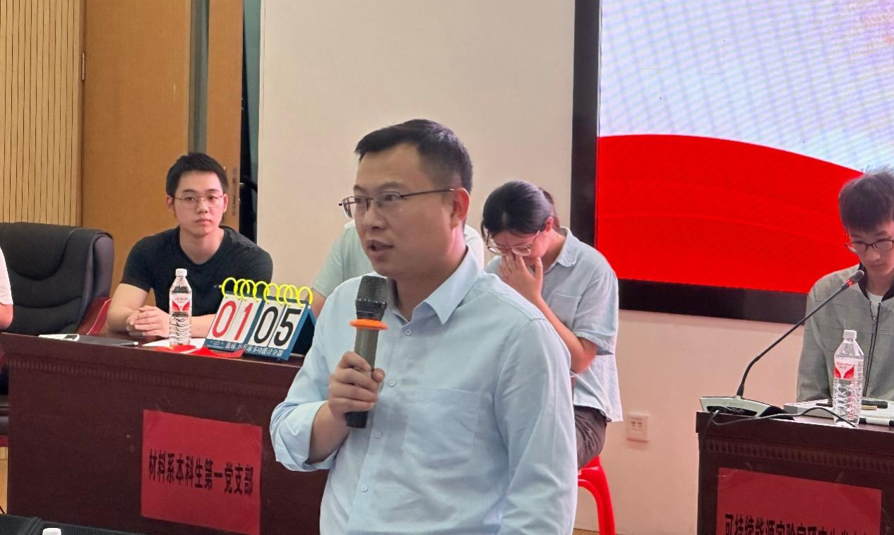 党建办要对此次竞赛活动进行认真总结,进一步完善组织形式与活动内容,进一步擦亮“一院一品”党建工作品牌。为进一步提升党史学习与党纪学习教育成效,他要求各党支部结合主题党日等建立常态化学习机制,在学习中不断增强党性修养、提升思想境界、坚定理想信念。最后,他寄语青年党员和入党积极分子,希望大家不忘初心、牢记使命,自觉将自身发展融入祖国建设发展中,瞄准国家战略发展需求,紧紧把握新能源新材料领域创新发展大势,带头奋发进取、担当作为,为实现中华民族伟大复兴贡献智慧与力量。