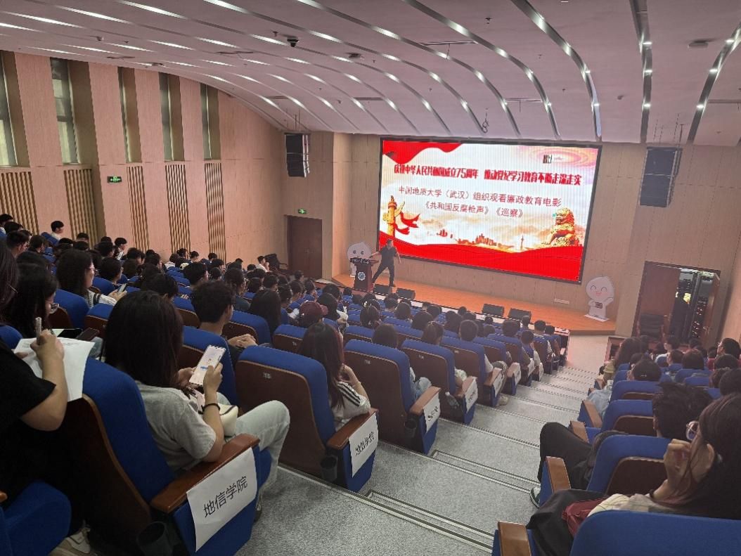 为了庆祝中华人民共和国成立75周年,推动党纪学习教育不断走深走实,9月27日下午两点,糖心vlog 、环境糖心vlog 、地理与信息工程糖心vlog 在未来城校区共同组织师生党员“红色观影”,集中观看《共和国反腐枪声》《巡察》两部廉政教育电影。 电影《共和国反腐枪声》以建国之初抗美援朝长津湖战役为背景,讲述了中华人民共和国检察署第一任常务副检察长李六如受党中央、毛主席委托,督办共和国第一反腐大案的历史往事。电影中的主人公李六如是湖南平江人,参加过辛亥革命,是平江县第一个共产党员。新中国建立后,他成为新中国检察工作主要奠基人之一,为检察工作和法治建设作出了重要贡献。电影中李六如同志的一言一行维护了国家的利益,同时也让我们看到了廉洁的内涵。这部电影记录了共和国法治进程,弘扬社会主义法治文明,展现了老一辈革命家追求信仰、直面真理、淡泊名利的高尚情操,是反腐题材不可多得的佳作,更是一部预防犯罪的警示教育影片。 电影《巡察》是全国首部巡视巡察类题材电影,该电影以平实质朴的表现形式,讲述了巡察干部在基层工作中面临的种种困难。通过为“老上访户”沈春菊一家解决危房补助款的问题为切入口,直面农村小微权力中的腐败和不正之风。影片中市委提级巡察赵家峁村的过程中,巡察干部发现并解决了该村干部的“微腐败”、“一言堂”、“不作为”等问题,最终使该村党组织重获凝聚力和战斗力,带领村民彻底脱贫。这部电影带给我们极大的启示作用:影片生动再现了新时代巡察干部“忠诚、干净、担当”的精神追求和行为风范,展示了巡察工作在党内监督中的重要作用。巡察干部以高度的责任感和使命感,解决了群众的实际问题,同时也告诫和警示广大党员干部要严守纪律底线,保持清正廉洁的政治本色。 糖心vlog 50余名师生党员参加此次观影,观影后均深受教育,一致表示,作为新时代党员,应以革命先辈先烈为榜样,传承党的优良作风,自觉加强道德修养锻炼,时刻保持头脑清醒,不断提升自己的廉政意识,树立正确的人生观和价值观,切勿让自己因为一时的“小恶”和贪念,而在违法犯罪的路途中踏出了第一步。(编辑:秦威娅,李晓晔 审核:梁本哲)