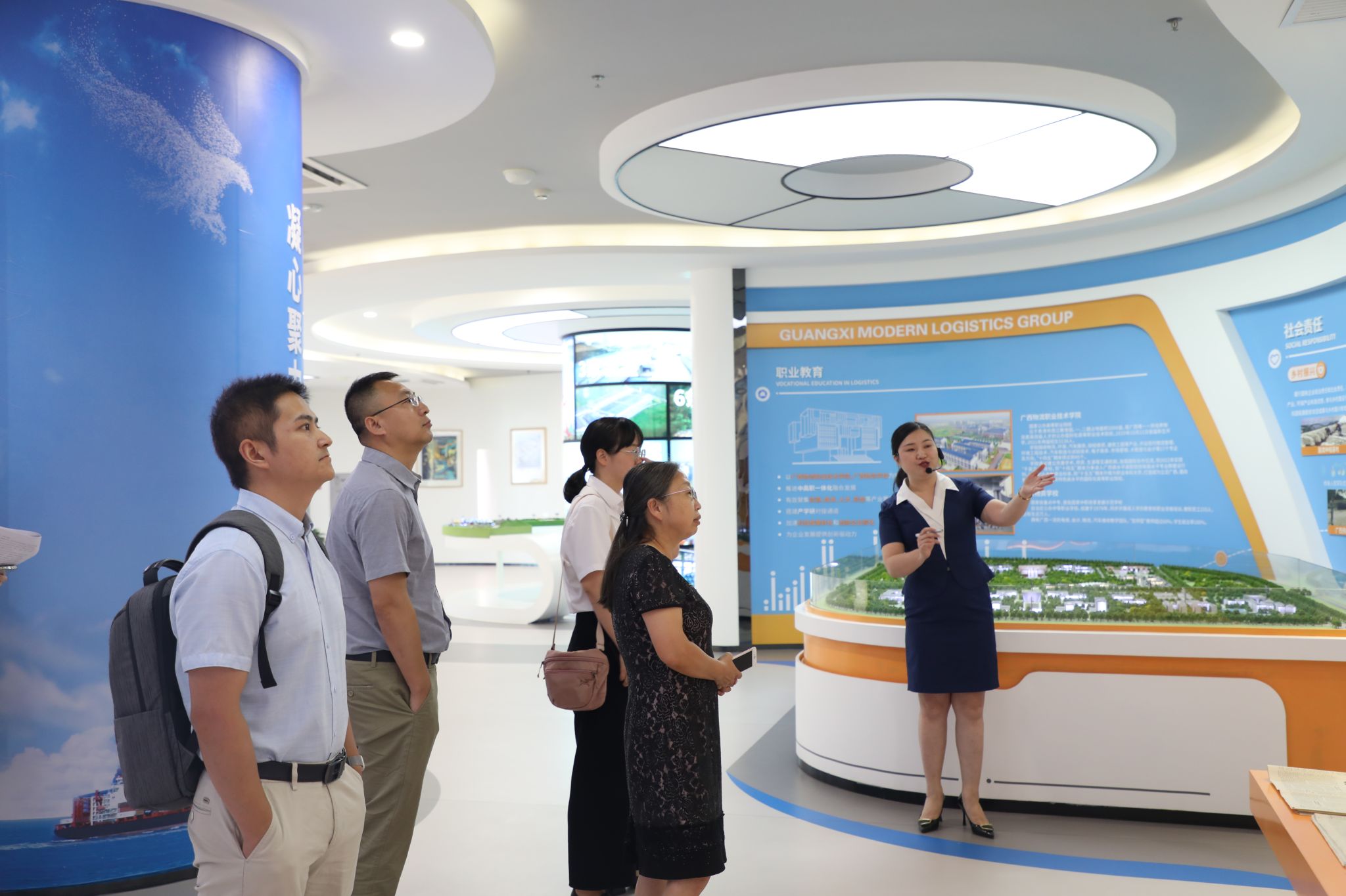 的产学研情况,双方就人才培养、成果转化、校企合作项目等方面的合作意向进行了充分交流,并一致表示将进一步加强交流和合作,推动实习实训基地和合作项目尽快落地。会后,在张洁副总经理的引导下参观了广西环保集团,充分了解了企业历史、重点业务及发展等情况。