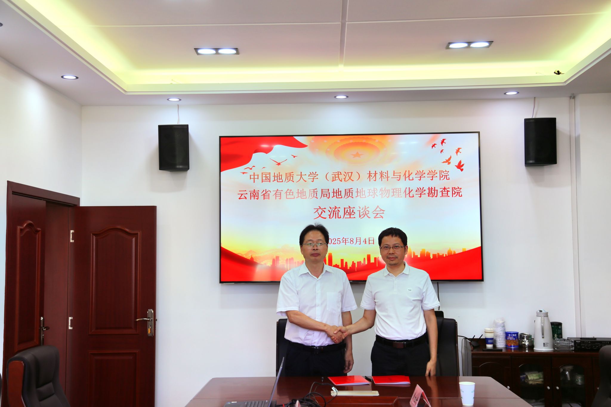 院长胡兆初、教师代表鲍征宇、鲁立强、田欢和学生代表黄旭升赴云南省有色地质局地质地球物理化学勘查院(以下简称“物勘院”)开展专题调研交流,并举行共建“本科卓越工程师培养计划培训基地”挂牌仪式。