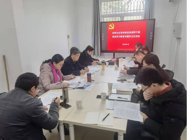 领导班子在南望山校区石材厂A201召开党史学习教育专题民主生活会。王华副校长到会指导,院党委书记黄菊同志主持会议。