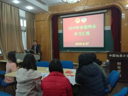 党委认真贯彻落实学校和上级部门学习两会精神的部署安排,在党委自身加强学习的同时,党委书记黄菊安排班子成员到师生支部中宣讲两会精神,进一步推动学习深入。