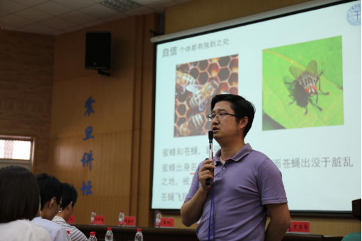 的基本情况,然后他又以自信和勤奋为切入点,强调了自信和勤奋是通向成功的两个重要素质,并以蜜蜂和苍蝇为例,与全体新生互动,引导新生不断思考,找到自己的优势。在谈到勤奋时,夏院长以罗斯福成长奋斗的故事、一万小时定律为例勉励新生们勤奋学习,专注科研,勇往直前。最后夏院长以“宝剑锋从磨砺出,梅花香自苦寒来”一诗与新生共勉。