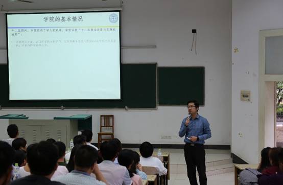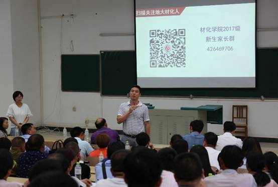 近几年来学生就业区域、就业单位性质、考研院校等信息。在谈到家长与孩子沟通时,夏院长强调了有效的沟通是家长帮助孩子成功的一个重要因素,并和家长们分享了自己的个人体会,以百米赛跑效应和红绿灯法则来鼓励新生们勇往直前,抓住时机,努力学习,积极参与科研工作。最后夏院长以“宝剑锋从磨砺出,梅花香自苦寒来”勉励大家。