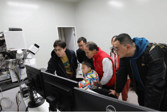 办公室主任曾成,辅导员唐伟、侯亚飞及学生代表、忠荣科技创新基金获得者车华超、李开云等陪同参观交流。