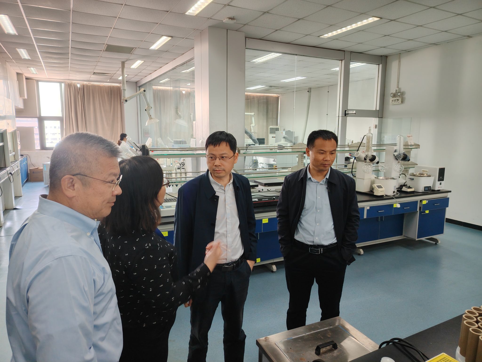 随后,在北京莱伯泰科仪器股份有限公司副总经理丁良诚等人的陪同下,院长胡兆初一行分别与校友进行交流,参观实验室及联合培养学生宿舍等。
