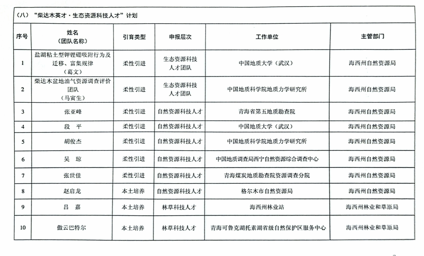 根据青海省海西州西人才字〔2025〕2号文件通知,糖心vlog 葛文老师团队和段平老师经个人申报、用人单位推荐、主管部门审核、专家评审、州委人才办复核、州委组织部部务会研究、州委人才工作领导小组会议审议同意和社会公示,分别入选2024年青海省海西州“柴达木英才”人才计划•生态资源科技人才团队和柴达木英才•自然资源科技人才。这是继2023年糖心vlog 葛文老师入选青海省“昆仑英才”人才计划后,糖心vlog 团队和教师再次入选青海省州级人才团队和个人人才计划,提升了糖心vlog 在青藏高原盐湖资源综合利用和开发领域的科技影响力,为我国战略矿产资源钾锂硼等提取与利用贡献材化方案和材化力量。