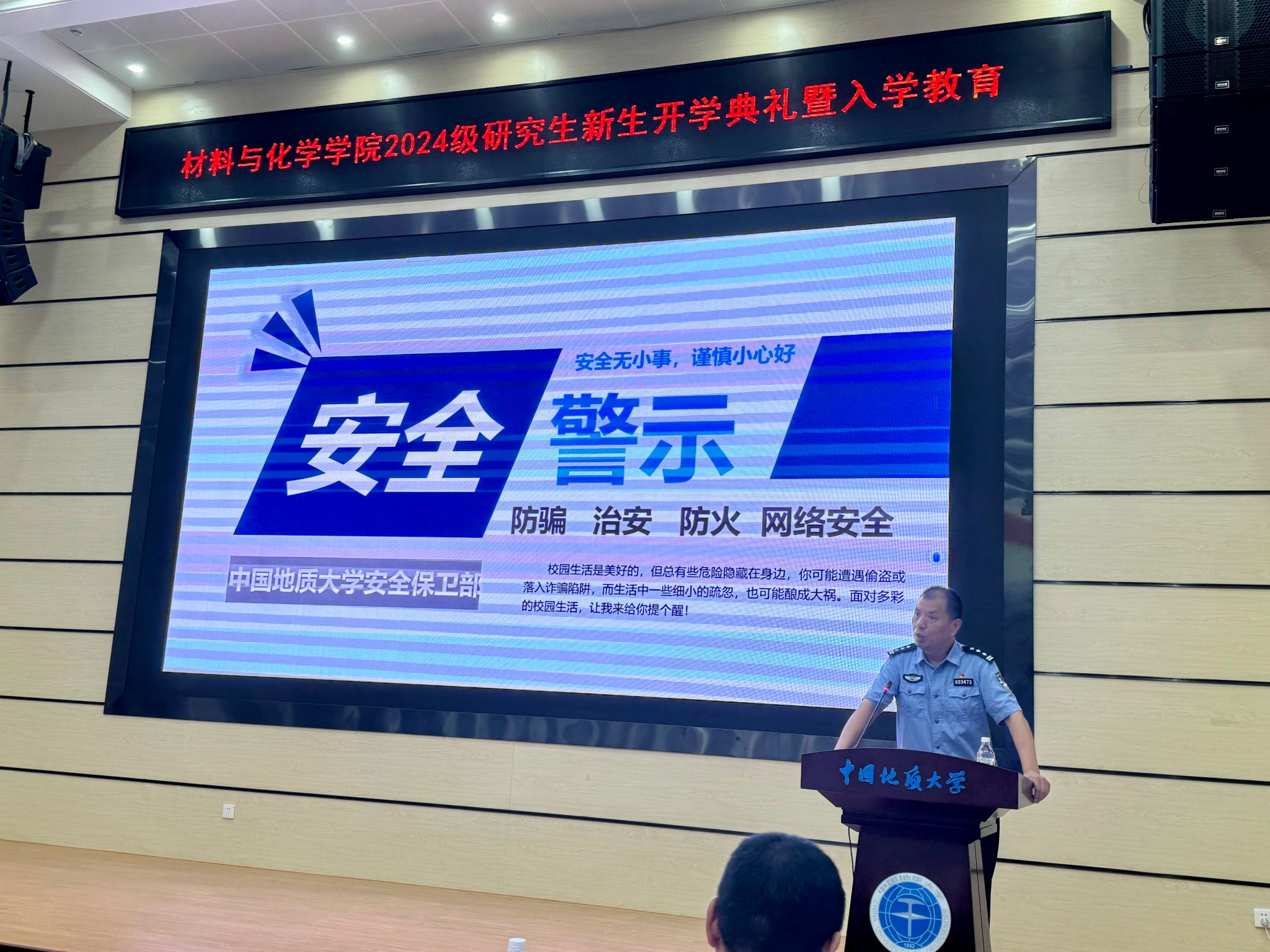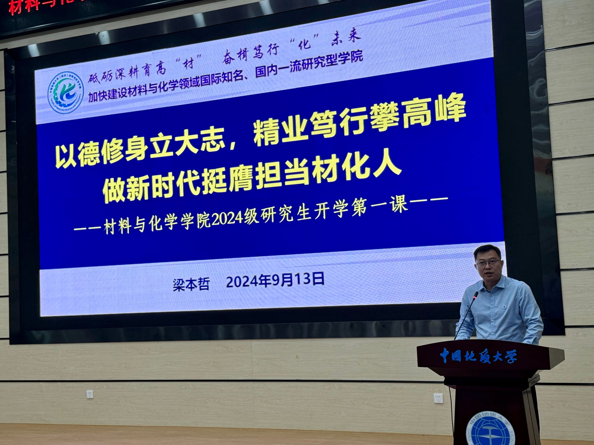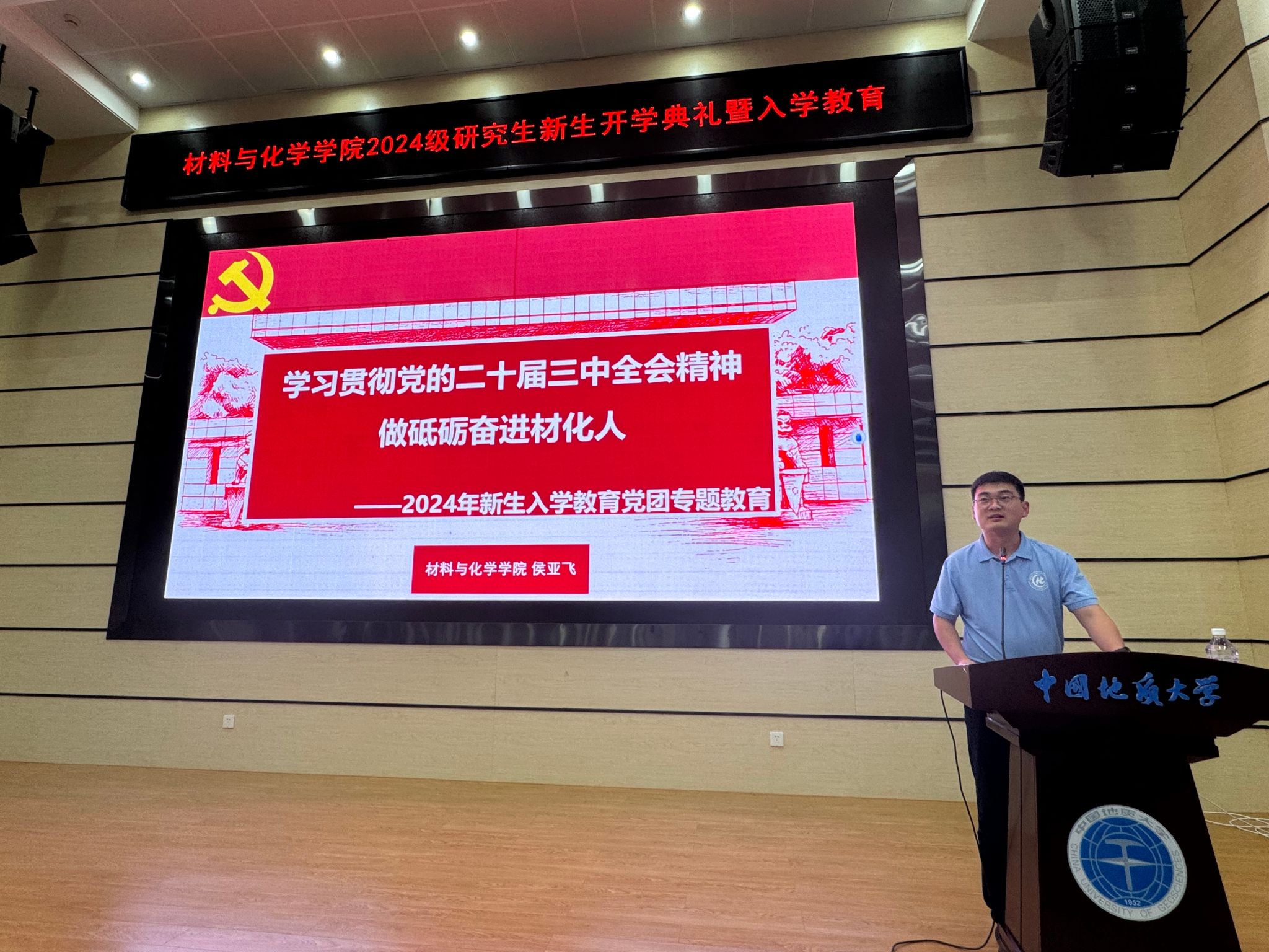 的发展历程、建设成效及特色优势,他勉励新生:一是要为国攀登,争做地大精神“传承者”;二是要重新起跑,争做全新赛道“先行者”;三是要追求卓越,争做矢志创新“排头兵”;四是要坚守底线,争做学术道德“捍卫者”;五是要挺膺担当,争做科技报国“践行者”;六是要奉献社会,争做科教惠民“志愿者”。他希望全体导师身正为范,争做立德树人“大先生”。他希望全体研究生以材化为基石,将论文写在祖国大地上,成就精彩人生。
