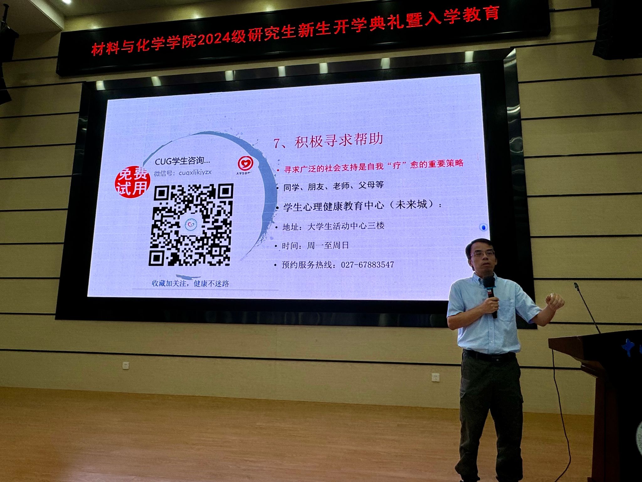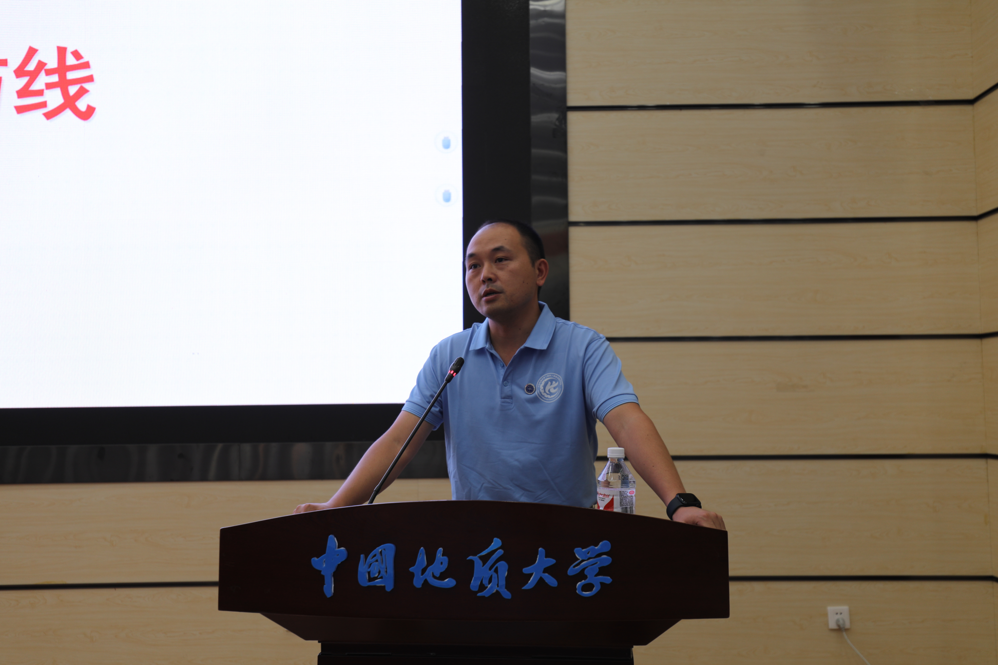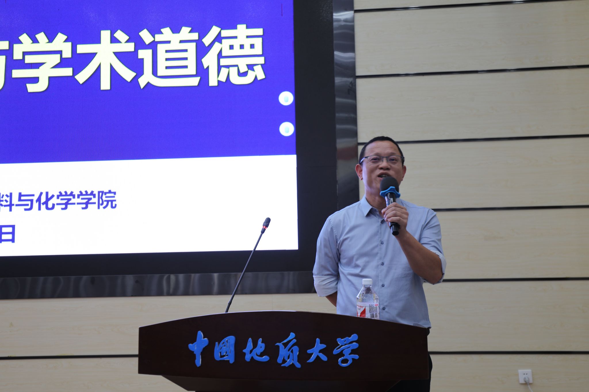 的发展历程、建设成效及特色优势,他勉励新生:一是要为国攀登,争做地大精神“传承者”;二是要重新起跑,争做全新赛道“先行者”;三是要追求卓越,争做矢志创新“排头兵”;四是要坚守底线,争做学术道德“捍卫者”;五是要挺膺担当,争做科技报国“践行者”;六是要奉献社会,争做科教惠民“志愿者”。他希望全体导师身正为范,争做立德树人“大先生”。他希望全体研究生以材化为基石,将论文写在祖国大地上,成就精彩人生。