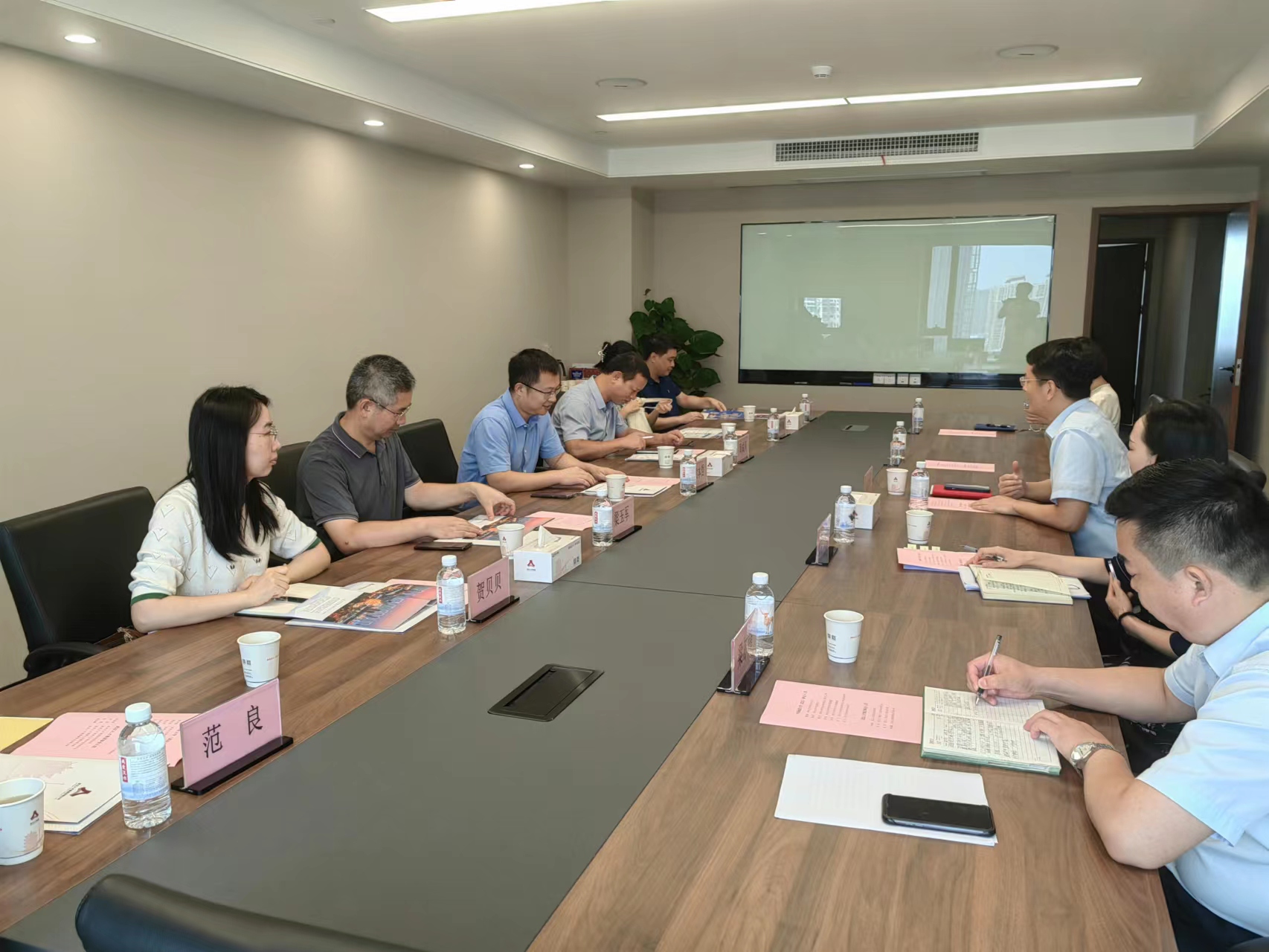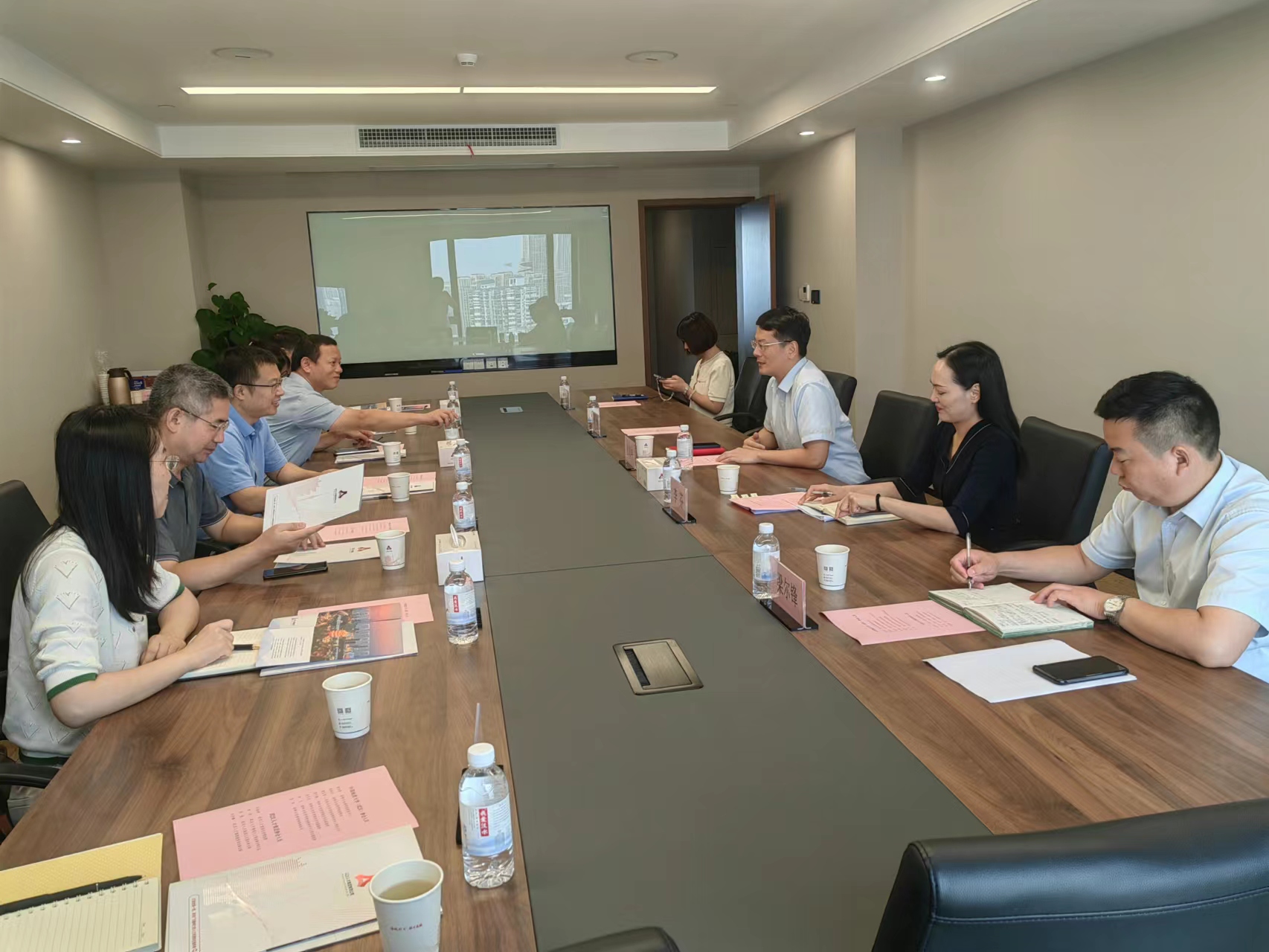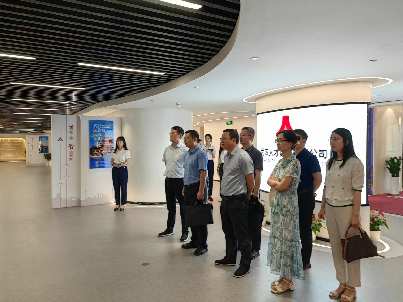 党委书记梁本哲、副院长周成冈、材料系主任梁玉军以及教师代表李飞、曾丹黎、贺贝贝,科研秘书范良等一行7人前往武汉人才集团有限公司走访调研。