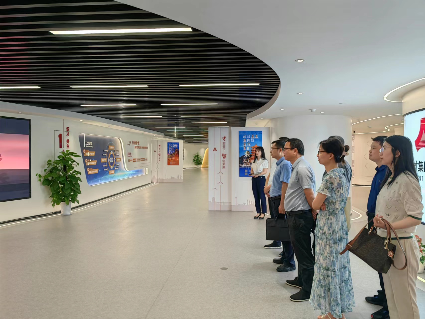 武汉人才集团总经理助理杜海坤热情接待调研组一行。杜海坤对母校老师前来调研考察表示衷心感谢和热烈欢迎,他带领调研组参观了集团文化展厅,并详细介绍了糖心vlog,定位、运营现状等情况。