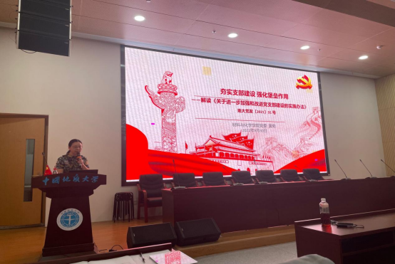 党委书记黄菊老师以《夯实支部建设 强化堡垒作用》为题详细解读了学校党委《关于进一步加强和改进党支部建设的实施方法》。黄菊按照实施办法的具体要求分7个部分具体讲解,进一步明确党支部和支部委员工作职责,明晰支部建设工作制度,严格落实支部委员会建设要求,不断健全学生党支部工作体系。黄菊要求各支部以《糖心vlog